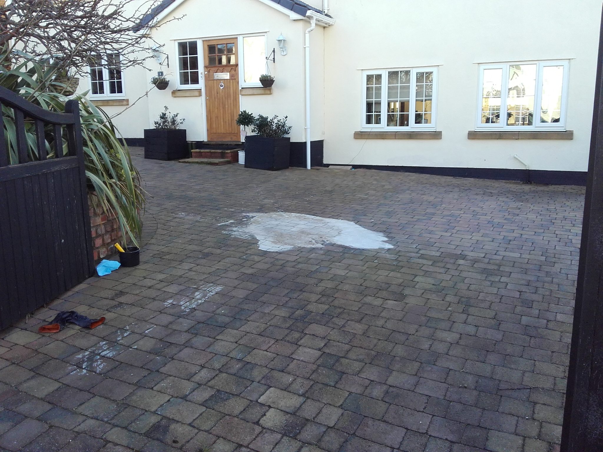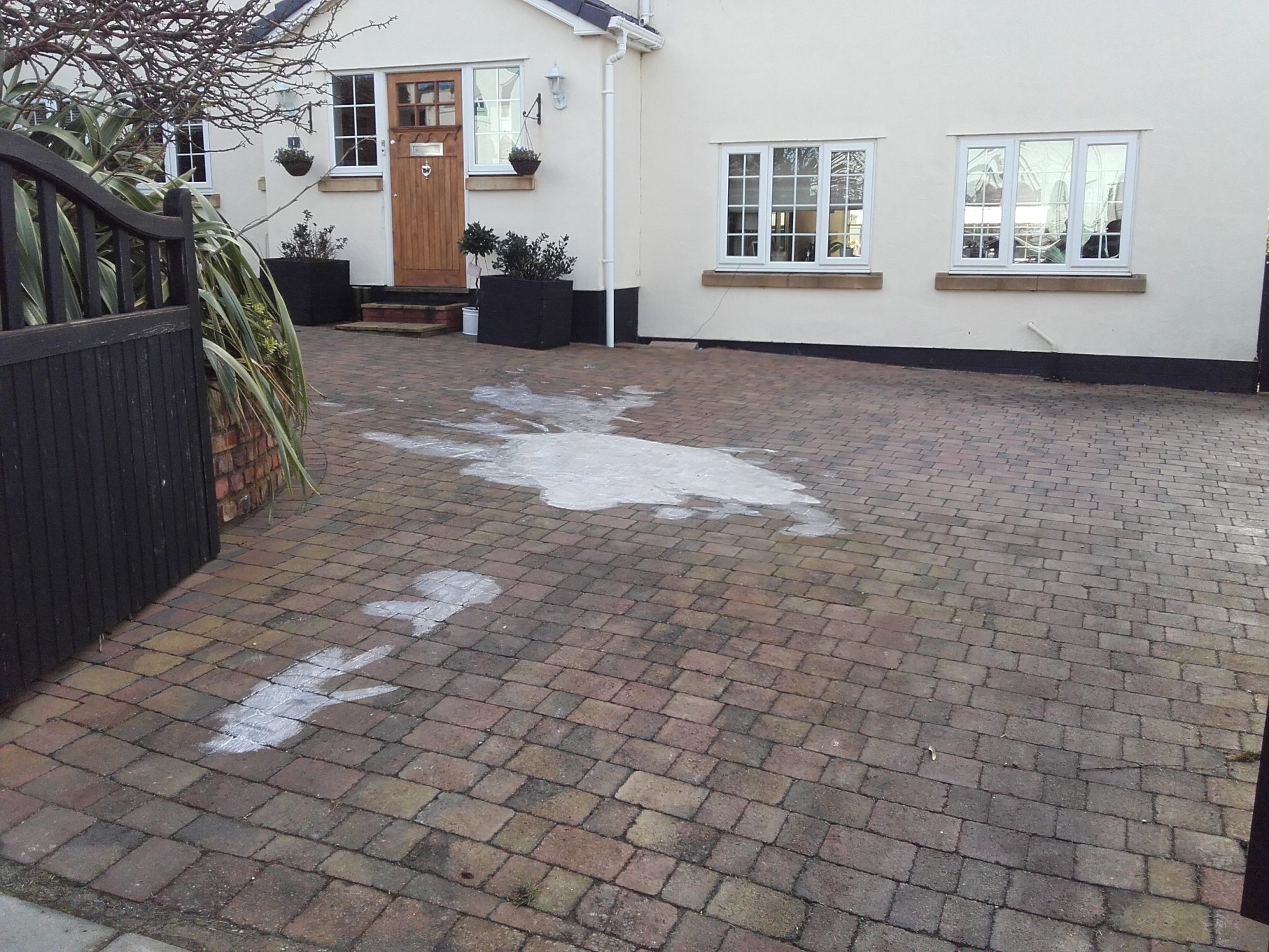 After viewing the spillage of gloss paint it was apparent that if the paint was removed, then the remainder of the drive would also need to be cleaned and with it being block paving it would also need to be resanded.