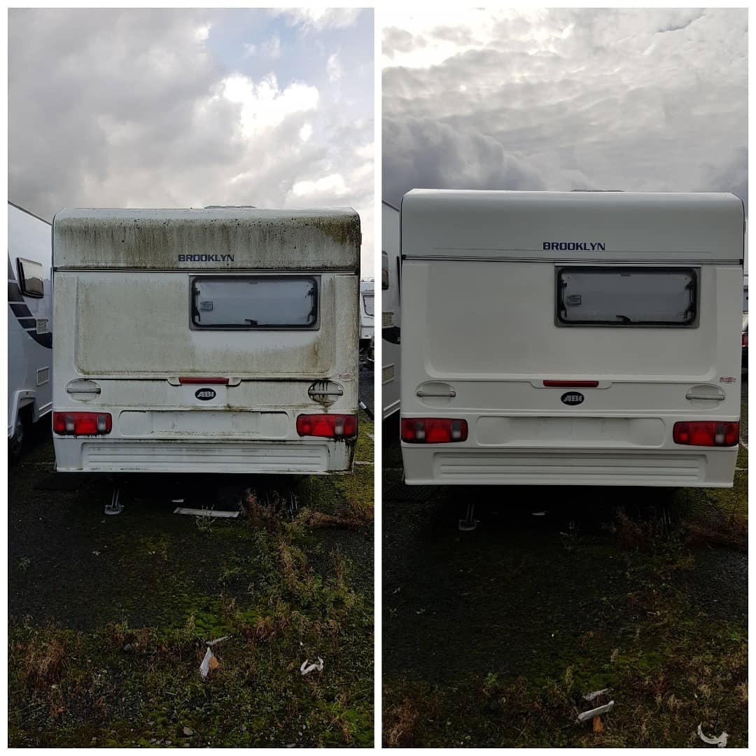 For the dirtiest of caravans we will apply an eco-friendly detergent to remove traffic film, moss/algea.